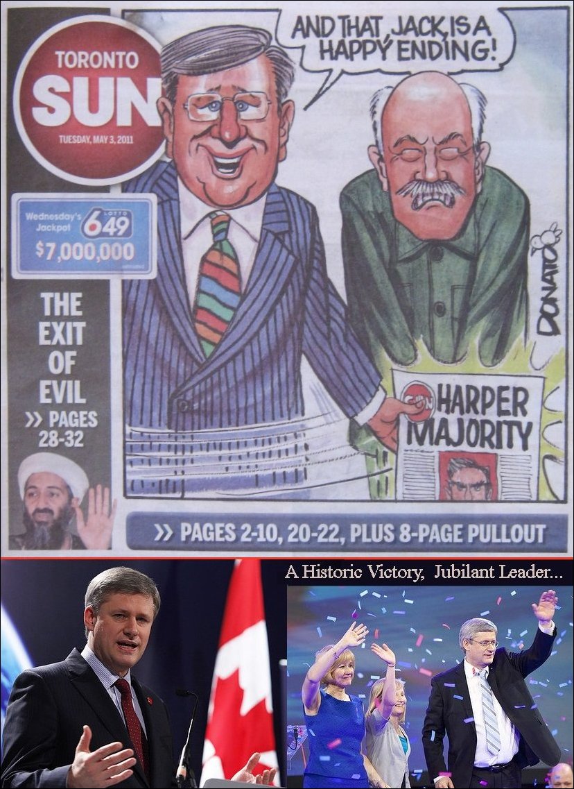 And just when I thought I had seen and heard everything, my father-in-law brought me a paper of the May 3 2011 copy of the Toronto Sun. All the other papers had been sold out, probably by anxious Canadians who are trying to make sense of an election that doesn't make any.